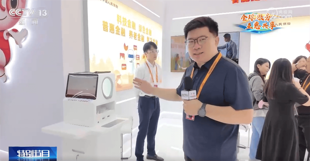 如果说在金融服务展区看到的是比较好理解的“科技范儿”,那在健康卫生服务展区就是妥妥的“黑科技”了。像全球最先进的CT机、磁共振设备之外,甚至把我国自主研发的全球首个人工智能骨科手术室也搬进了展区。今年首次亮相的国家人工智能中式基地展区,更是仿佛进入了一个未来的医疗世界。AI牙医系统、心电图智能对话诊断,还有数字康复师,通过AI视觉捕捉,无需任何穿戴设备就可快速识别动作,为居家患者进行康复指导。而在这边的未来诊室,那就更科幻了,这台这是全球首创的双控制台五臂手术机器人系统,可以看到两位大夫在控制着五个机械臂进行腹腔手术的模拟操作。